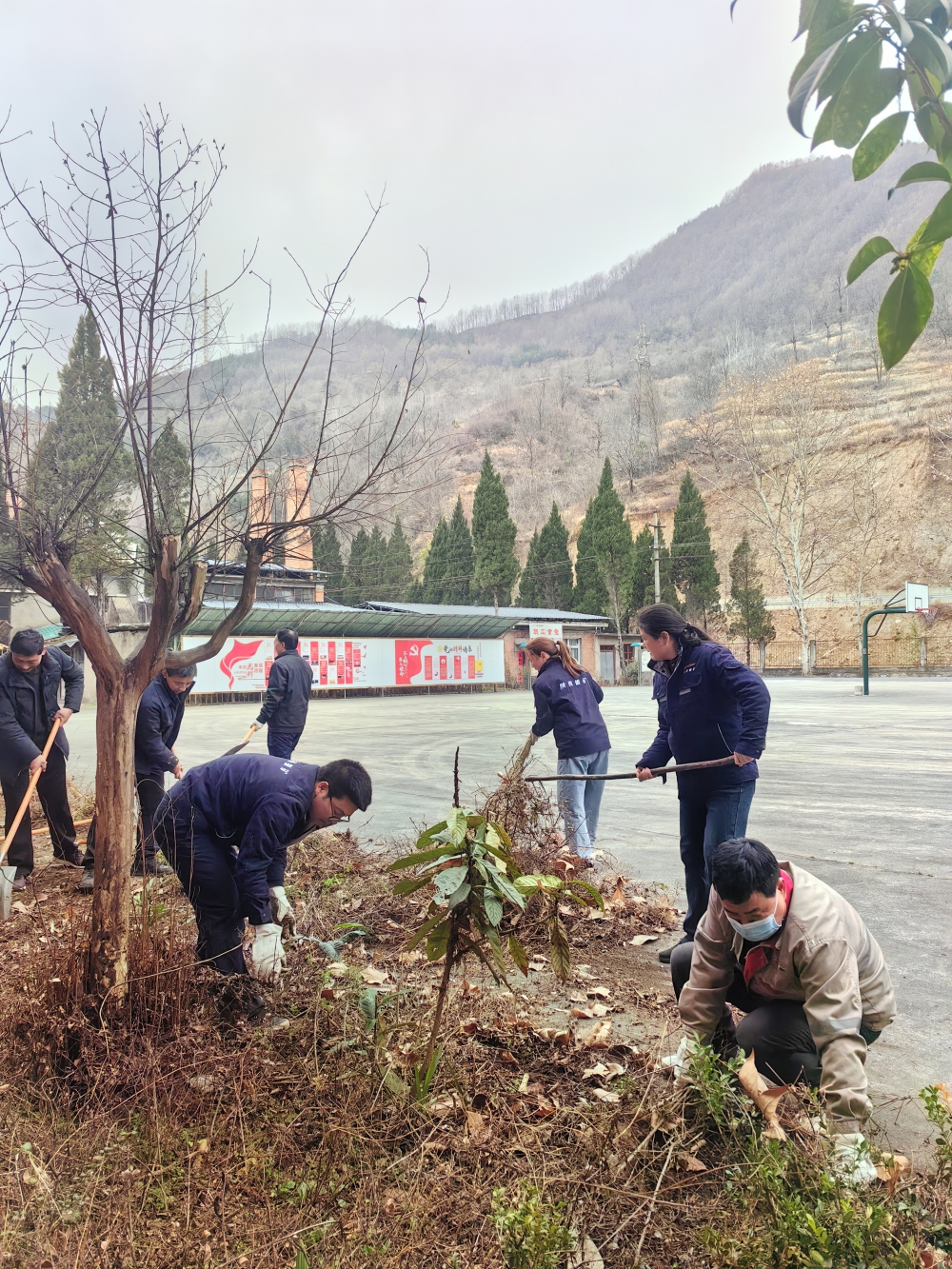 上午9時,在黨支部書記馬林波的動員下,志愿者們迅速集結(jié),手持鐵鍬、掃把、簸箕等工具,投入到緊張而有序的清掃活動中。他們分工明確,協(xié)作默契,對辦公樓前的綠化帶進行了徹底整治,重新翻土,播種花種,并清理了宿舍樓前綠化里的枯草、煙頭、塑料袋等雜物,為礦區(qū)增添了一抹生機。盡管當天大風肆虐,但志愿者們的熱情絲毫未減,他們干勁十足,不放過任何一個衛(wèi)生死角,經(jīng)過數(shù)小時的辛勤勞動,礦區(qū)面貌煥然一新,整潔有序。